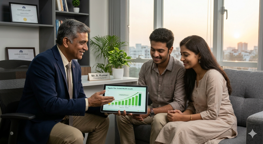 Investing is 10% math and 90% temperament. In a Regular Plan, you aren’t just paying for a transaction; you are paying for a Shield. When markets crash (as they did during the recent geopolitical jitters of early 2026), a Regular Plan investor has an advisor to call. That advisor prevents the investor from making the #1 mistake in finance: Selling at the bottom.