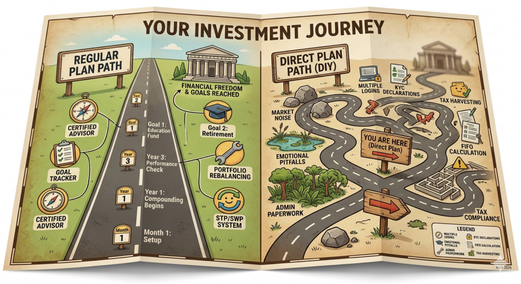 Many financial influencers argue that “Direct is better because it’s cheaper.” But in the real world, the Regular vs. Direct debate isn’t about cost—it’s about Value.